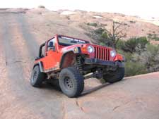 Fuer die ganz Wagemutige haelt unser Tourguide einen speziellen Trail in petto, den Hells' Revenge. Sie fahren meistens auf sogenanntem Slick Rock. Dieser Name entstand, da frueher die Planwagen auf dem Untergrund eine schlechte Wagenradhaftung hatten. Jedoch heutzutage ist dies kein Thema mehr. |
